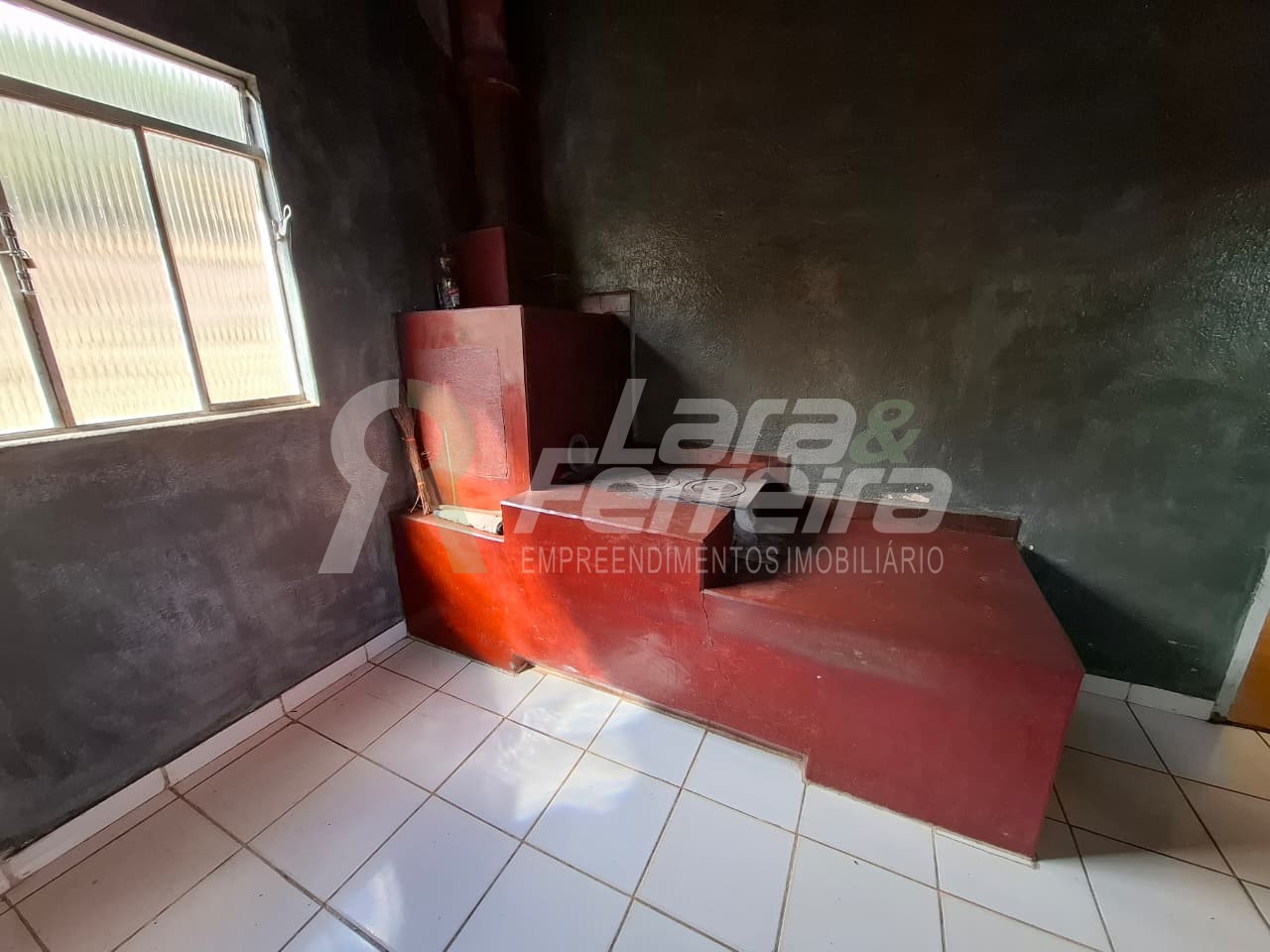 Casa de laje e telhado colonial, 4 quartos, sala,cozinha com fogão a lenha, um banheiro e garagem.